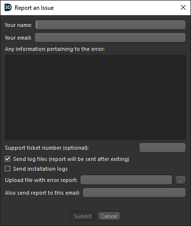 We also encourage you to use the Tools->Application Recorder (or Utilities->Screen Recorder in more recent versions) tool to record a video showing the steps to reproduce the issue. Attach that video in the Report an Issue dialog: